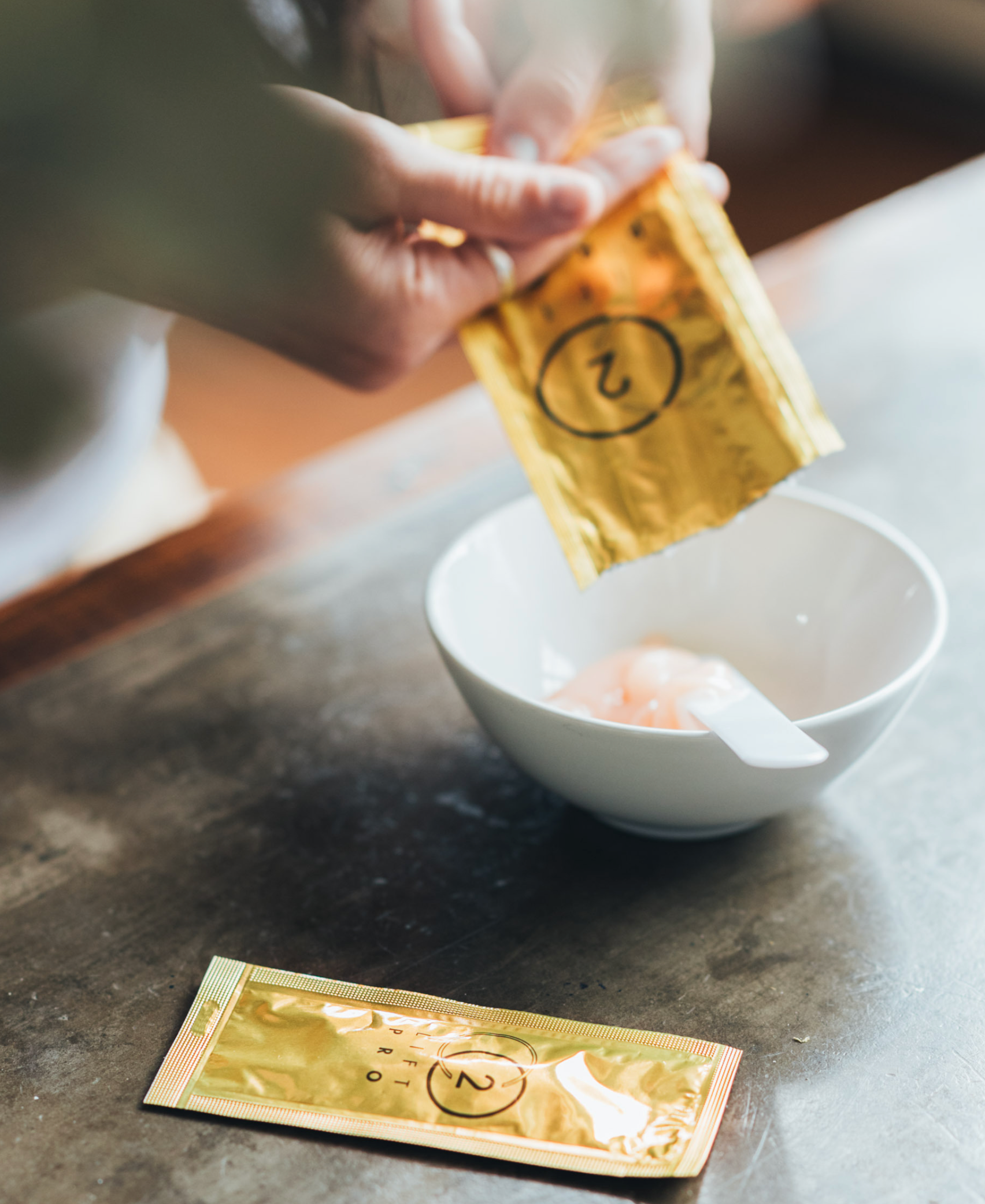 2. Empty the entire contents of large pack and small pack into a small mixing bowl.